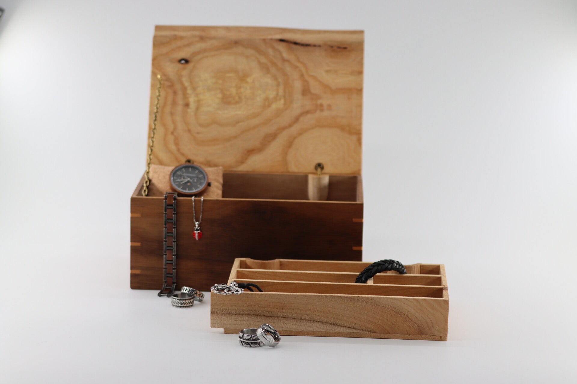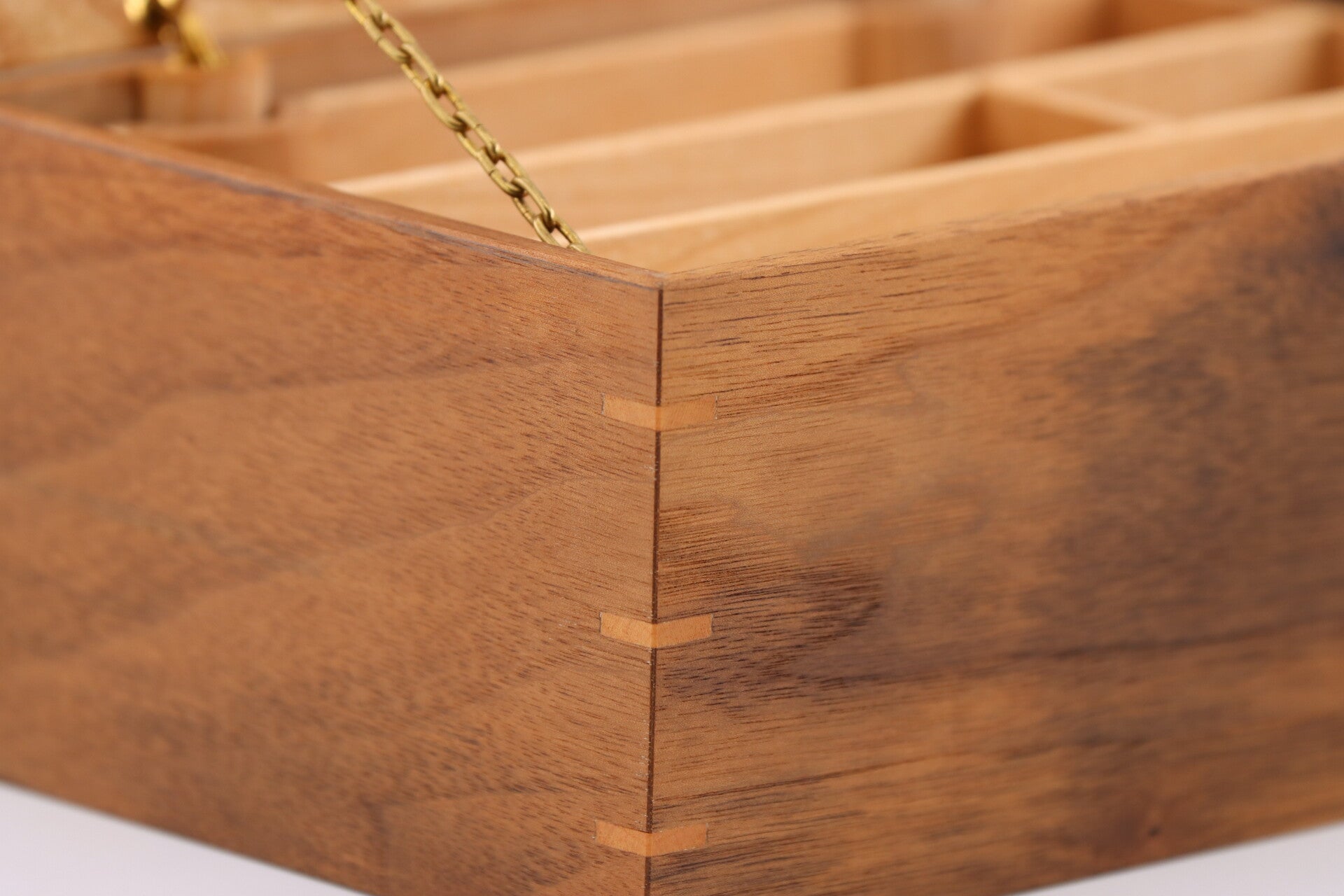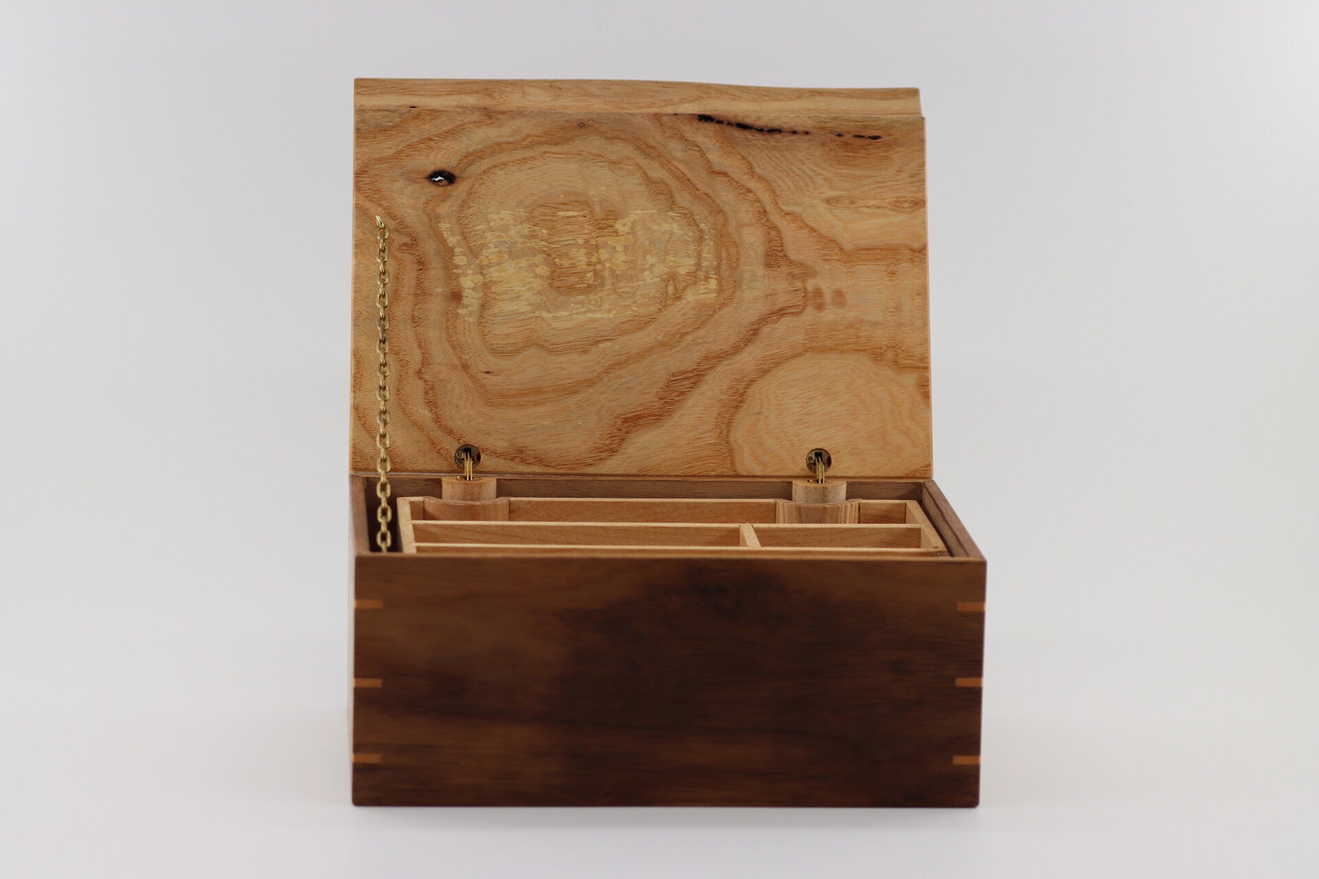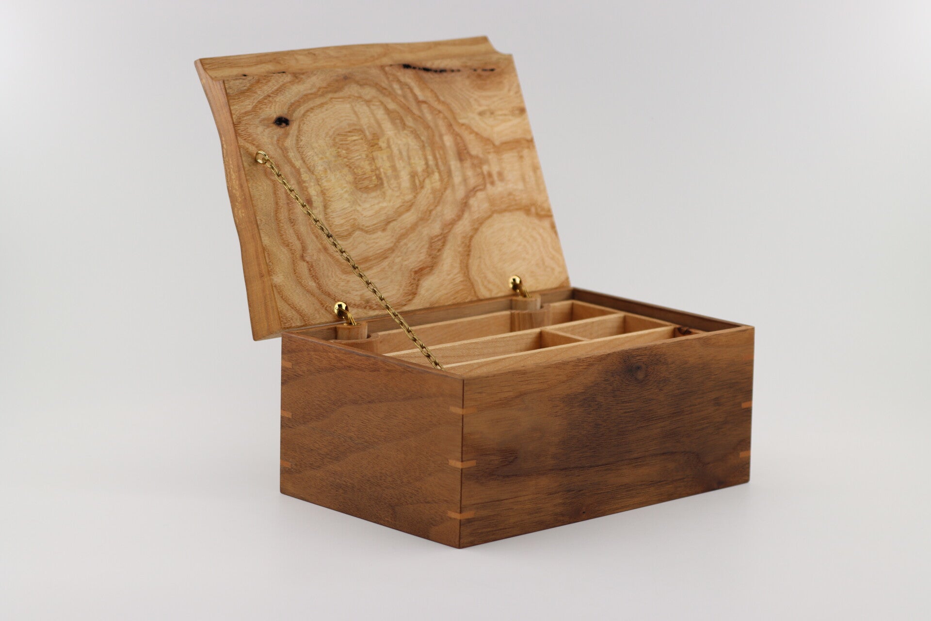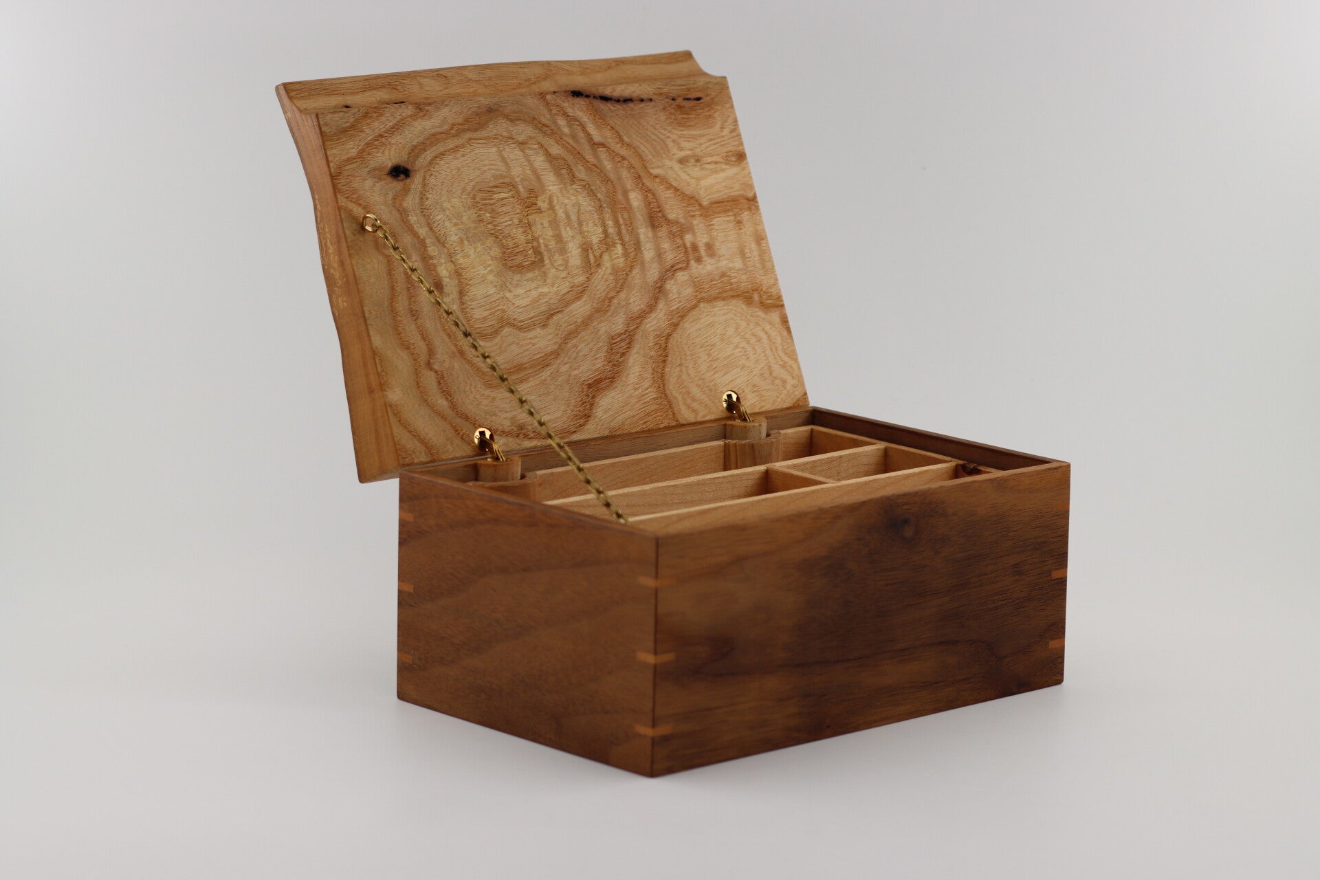Uniek Juwelen Kistje gemaakt van Notenhout met Beukenhout binnenwerk en Essenhouten deksel