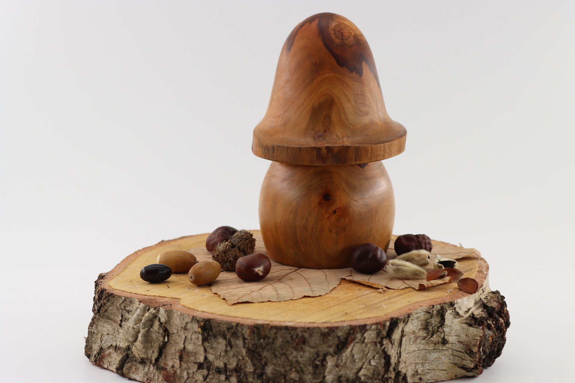 Leuke robuuste paddenstoel gemaakt uit Laurierhout. Het hout heeft een mooie tekening die door de danisch oil goed opkomt.
