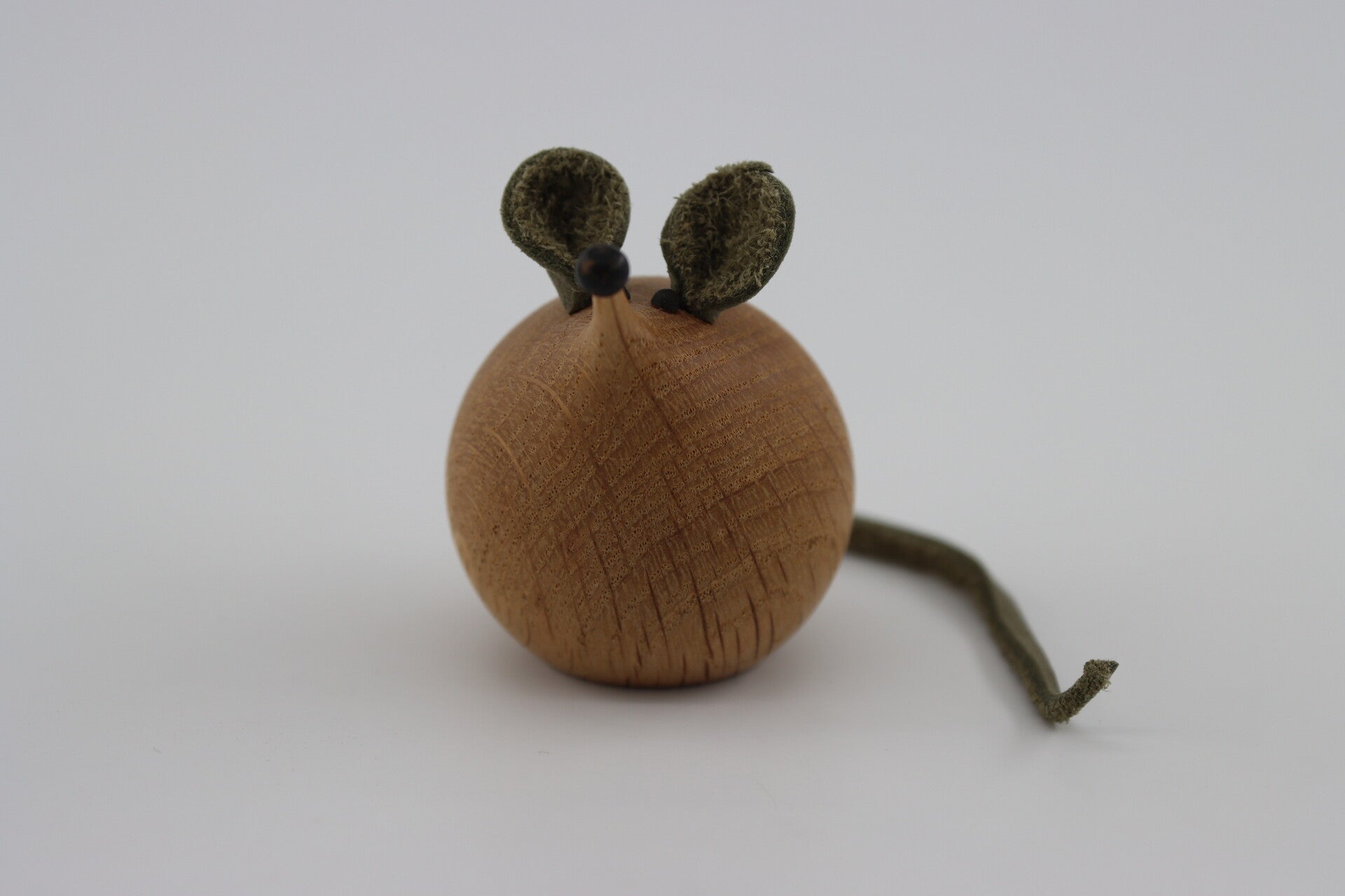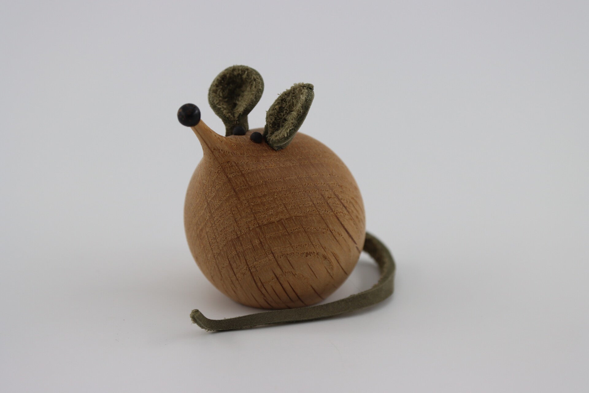 Leuke muis gemaakt van Amerikaans Volgelkershout met oren en staart van echt leer. Erg leuke decoratie voor in huis.
