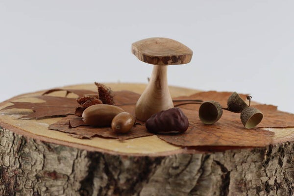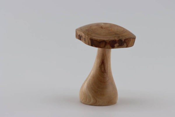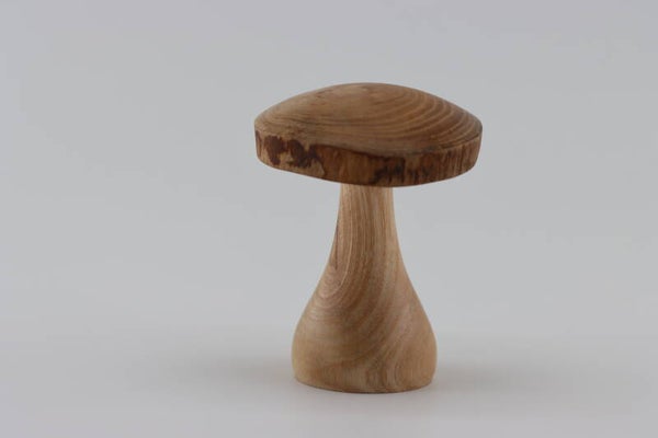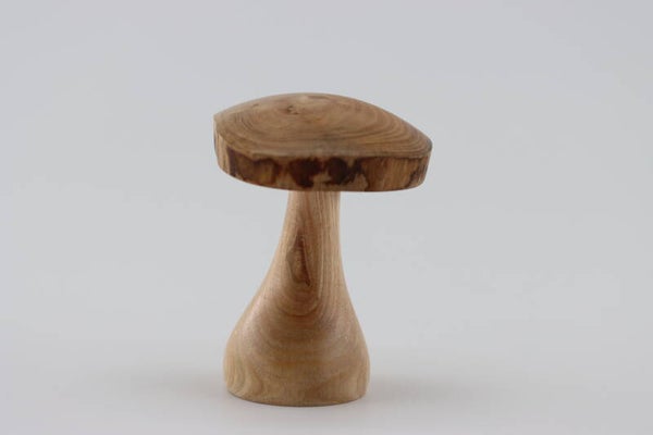 Leuke paddestoel gemaakt uit Essenhout. De hoed van de padestoel heeft een natuurlijke rand.
