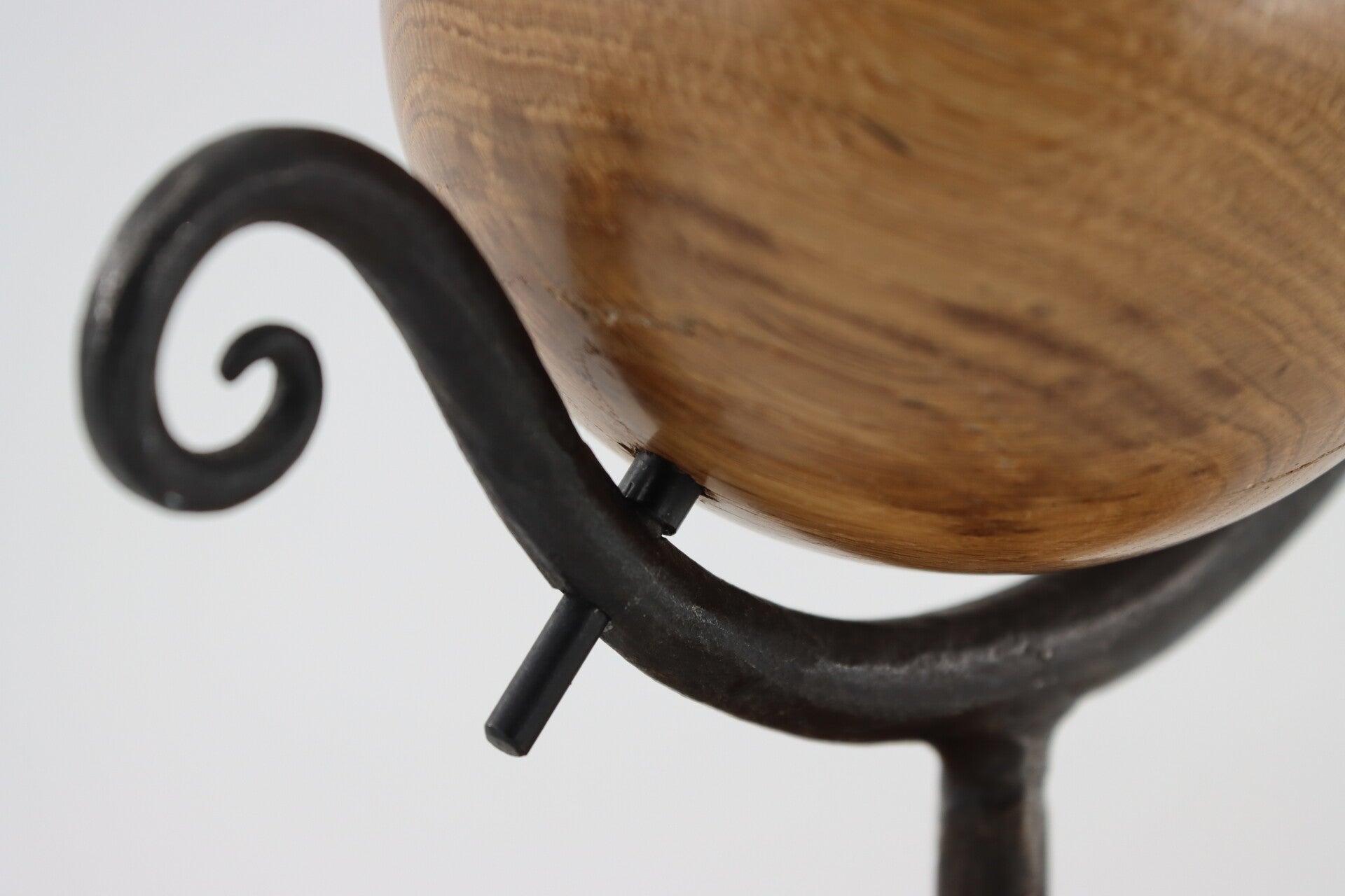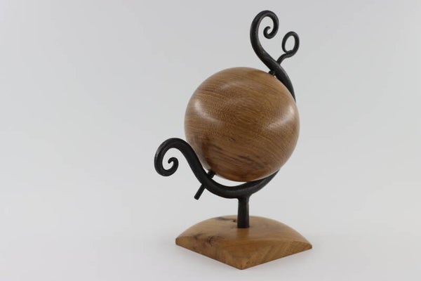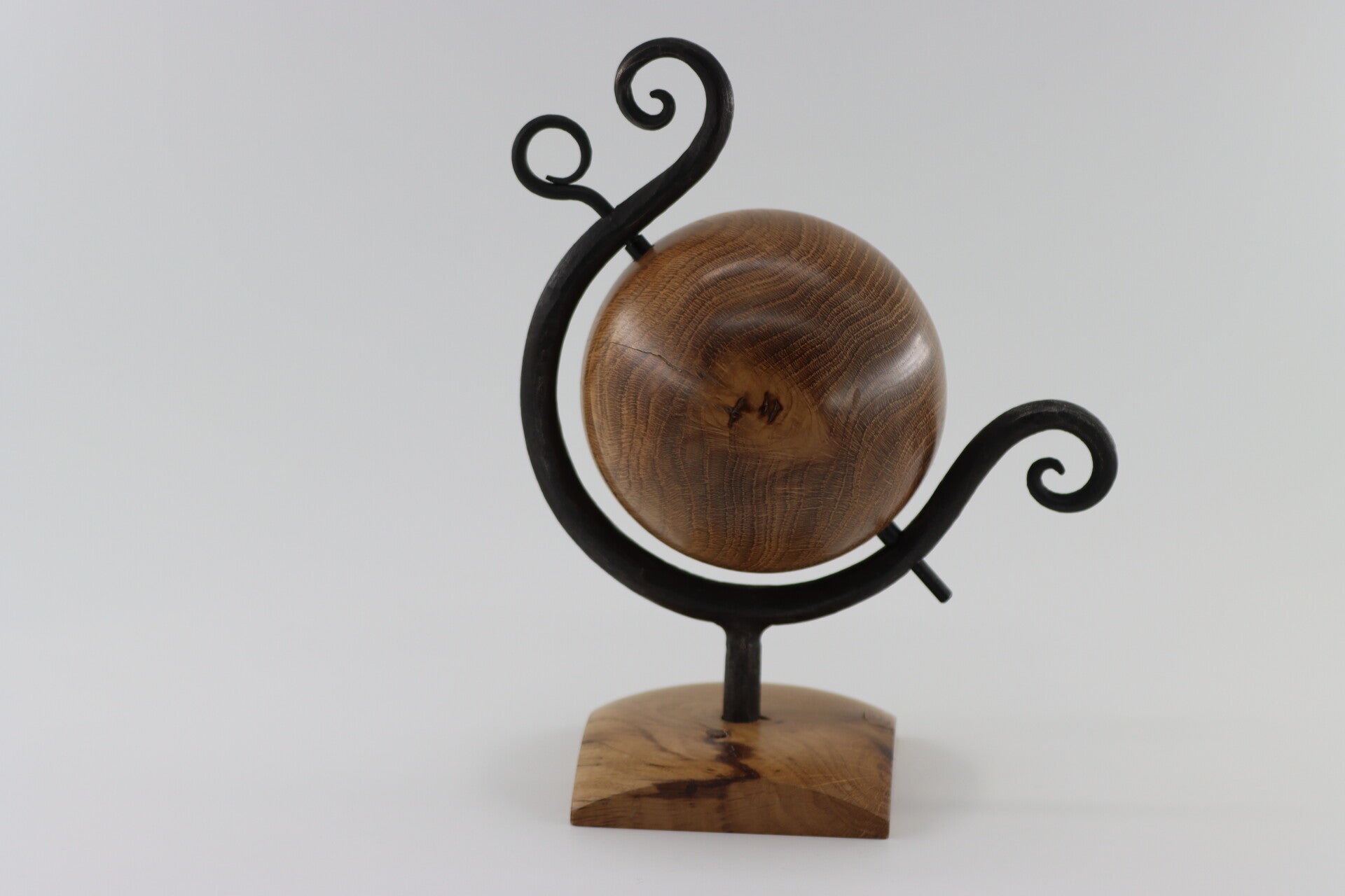 Unieke globe gemaakt van massief smeedijzer met een voet en bol uit europees eiken. De bol kan ook rond gedraaid worden wat het echt uniek maakt.